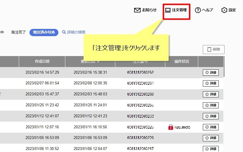1. PPM起動後、画面右上の「注文管理画面」ボタンをクリックします